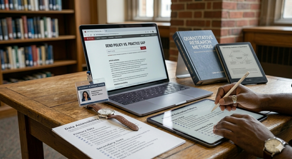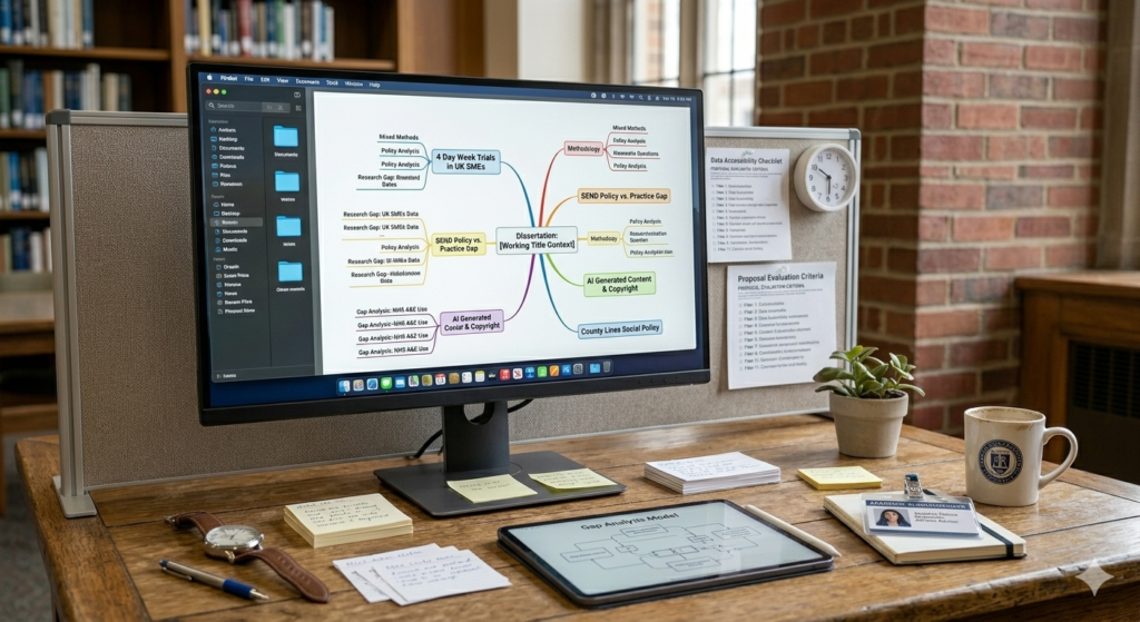 A topic that requires 100 interviews with NHS consultants is dead on arrival for a master’s student. Before you commit, check whether the people, documents, or datasets you need are realistically accessible. Secondary data, public datasets, and published case studies are your friend at undergraduate and master’s level. Our guide on primary vs secondary research walks through how to choose between them.